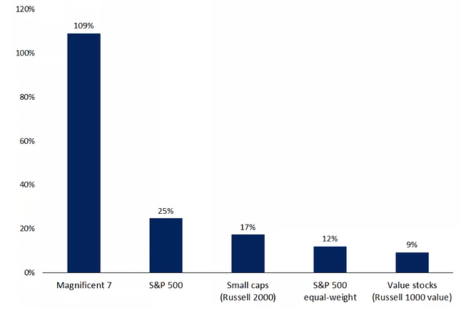 • The Information Technology sector had a great year, leaping more than 60%, driven by the big tech names (the Magnificent 7)
